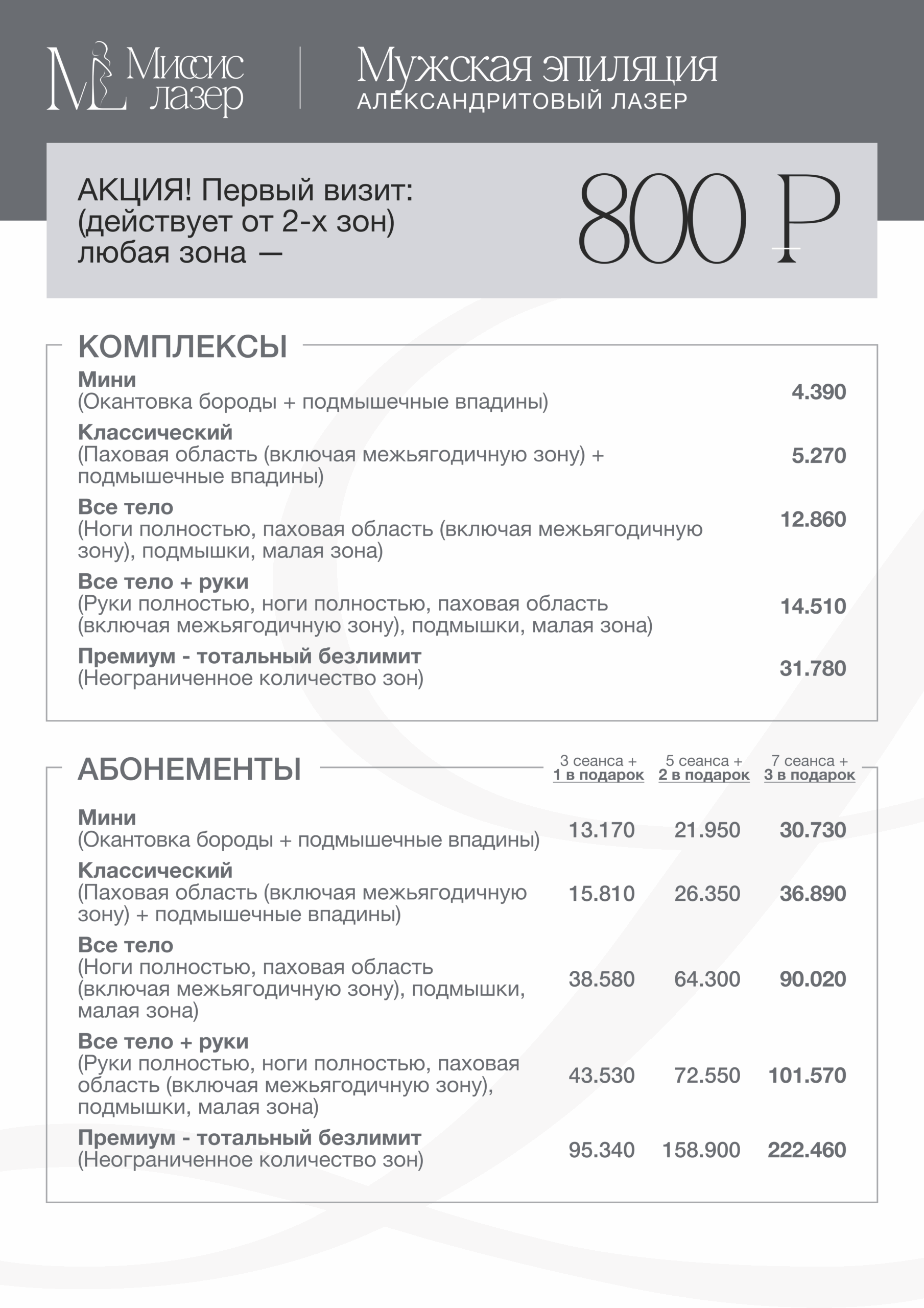 Лазерная эпиляция для мужчин в Казани, цена на лазерную эпиляцию