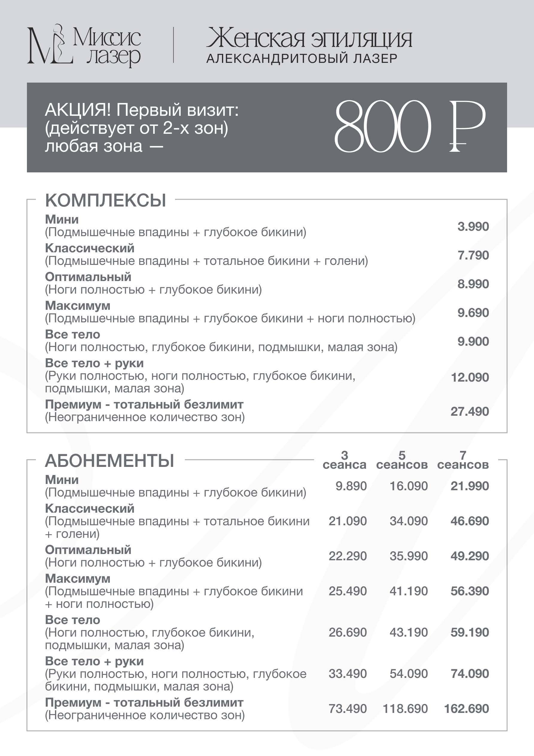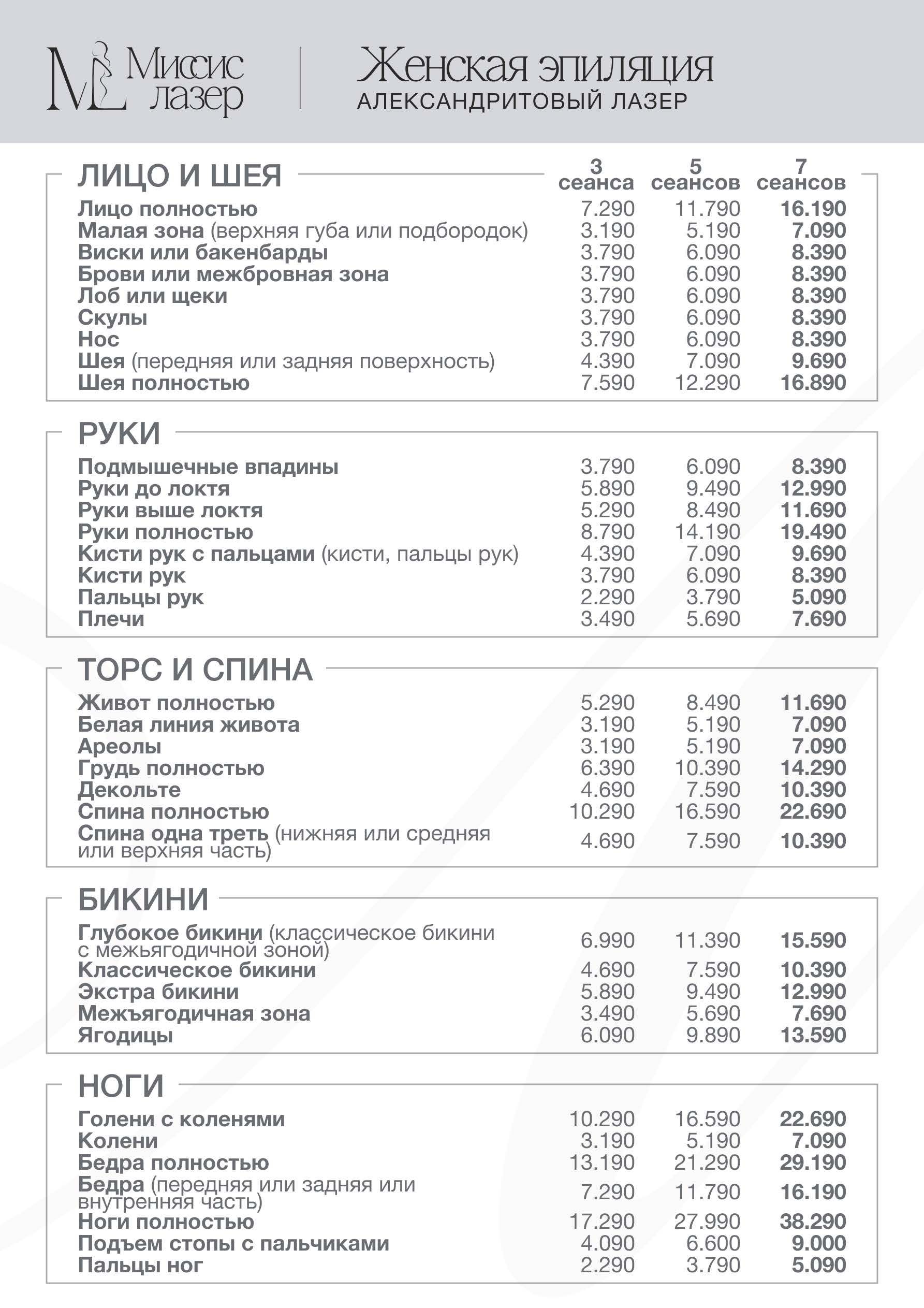 Лазерная эпиляция в Казани, цена в сети клиник Миссис Лазер